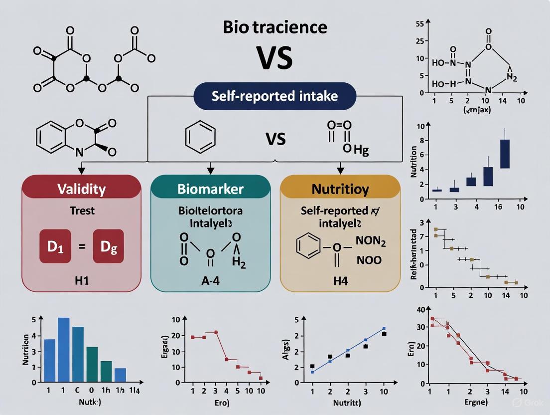 Accurate dietary assessment is fundamental to understanding diet-disease relationships, yet reliance on self-reported methods like Food Frequency Questionnaires (FFQs) and 24-hour recalls is plagued by systematic underreporting, recall bias, and measurement error. This article synthesizes current evidence to compare the validity of objective nutritional biomarkers against traditional self-report tools. We explore the foundational principles of dietary biomarkers, their methodological applications in research and clinical trials, strategies to troubleshoot self-report limitations, and frameworks for their validation. Aimed at researchers, scientists, and drug development professionals, this review highlights how biomarker-integrated approaches provide more reliable estimates of nutrient intake, enhance the rigor of clinical trials, and ultimately strengthen the evidence base for nutritional science and public health guidance.
